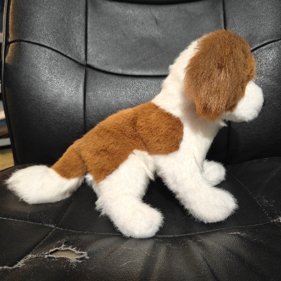Buttons is a Kingsley the King Charles spaniel dog plush from Douglas. He has been modified to have shorter ear fur.