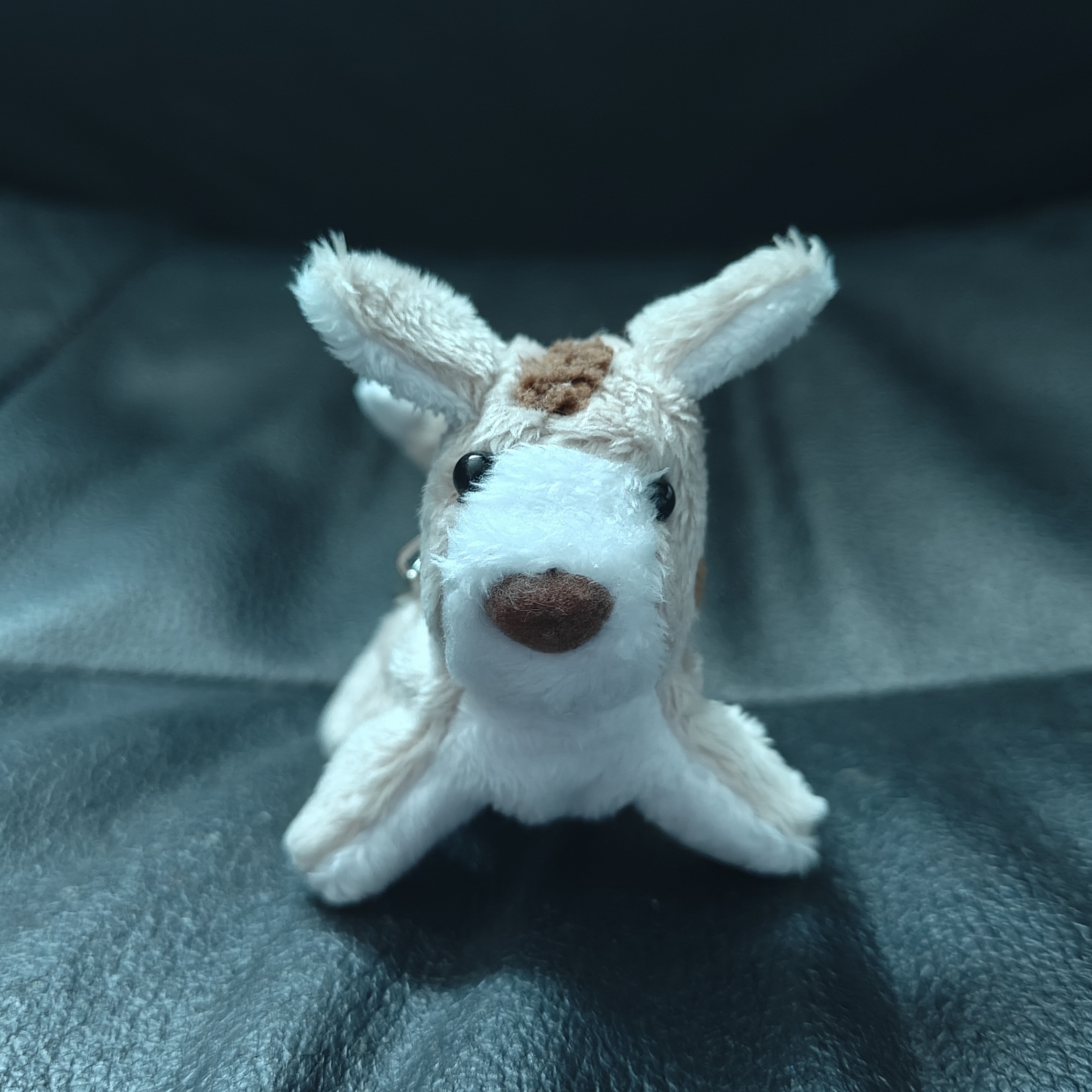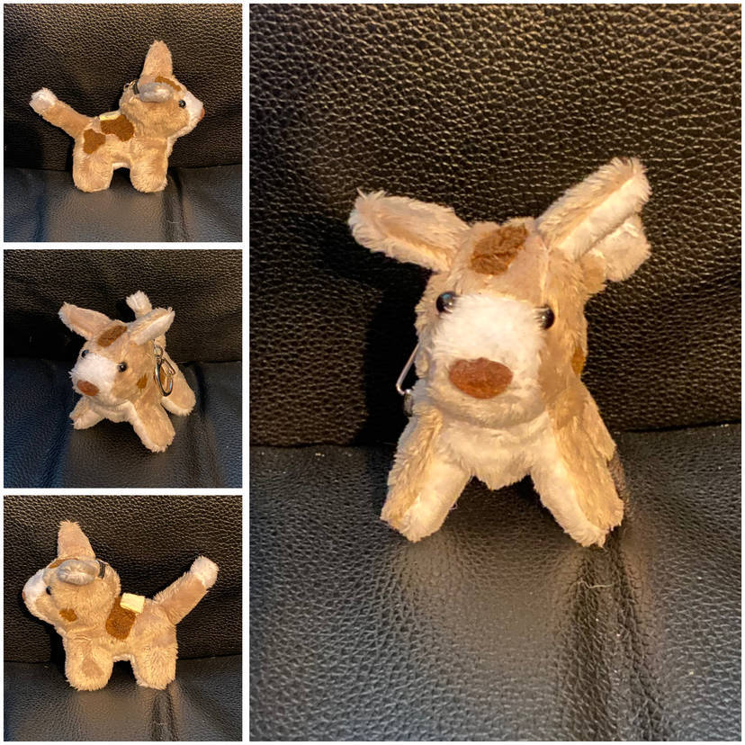 Flapjack is a stuffed animal dog keychain handmade by VexiiShop on Etsy.